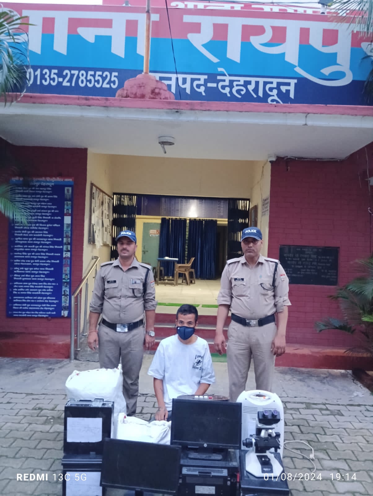 *घटना का विवरण* – दिनांक 30.07.2024 को वादी डाक्टर पी0सी0 रावत चिकित्सा अधीक्षक सामुदायिक स्वास्थ्य केन्द्र रायपुर जनपद देहरादून ने थाना रायपुर देहरादून में एक शिकायती प्रार्थना पत्र दिया गया कि दिनांक 29.07.2024 की रात्रि में सामुदायिक स्वास्थ्य केन्द्र, रायपुर चिकित्सालय के कार्यालय से किसी अज्ञात चोर द्वारा इलैक्ट्रानिक उपकरण व अन्य सामान कीमत लगभग 08 लाख रूपये चोरी कर ले गया है । उक्त शिकायत पर थाना रायपुर पर तत्काल संबंधित धाराओ में अभियोग पजीकृत किया गया।