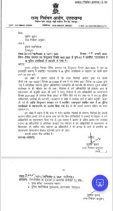 राज्य निर्वाचन आयुक्त सुशील कुमार ने नागर स्थानीय निकाय सामान्य निर्वाचन 2024 हेतु आदर्श आचार संहिता प्रभावी होने के दौरान तबादले एवं नियुक्ति प्रक्रिया जारी रखने पर पुलिस एवं वन विभाग से स्पष्टीकरण तलब किया है।