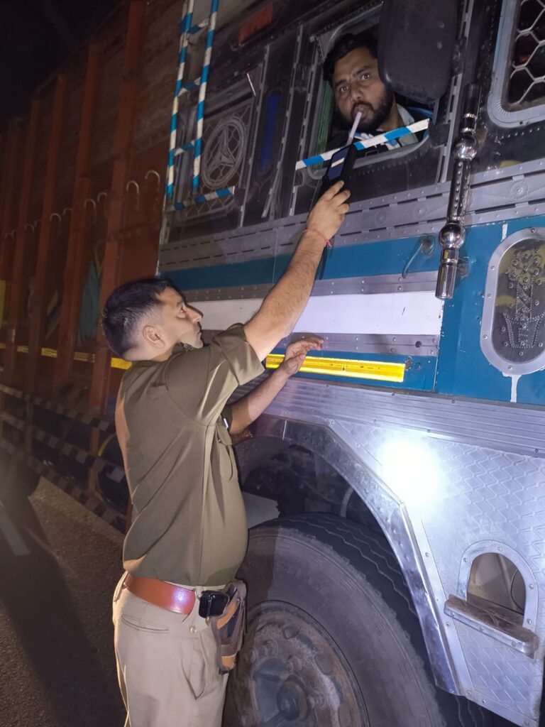 चेकिंग के दौरान पुलिस टीमो द्वारा आने- जाने वाले वाहनो की सघन चेकिंग सुनिश्चित की जा रही है। साथ ही सभी वाहन चालकों की एल्कोमीटर के माध्यम से जांच की जा रही है।