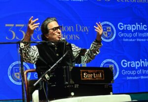 देहरादून। ग्राफिक एरा में मशहूर गजलकार तलत अज़ीज़ की गजलों का जादू चला और खूब चला। अपनी लोकप्रिय गजलों को अपने खास अंदाज में सुनाकर तलत अज़ीज़ ने लोगों को मंत्रमुग्ध कर दिया