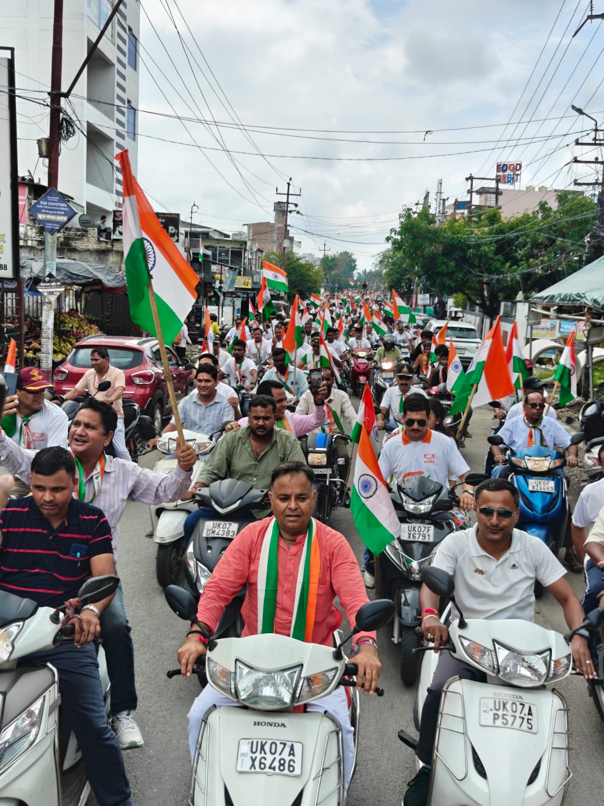 रविवार को विधायक विनोद चमोली और सीईओ अंकिता सिंह ने झंडी दिखाकर तिरंगा यात्रा को रवाना किया। यात्रा शहीद जसवंत सिंह रावत स्मारक मछली तालाब से प्रारम्भ होकर टर्नर रोड, क्लेमेनटाउन मोड, सहारनपुर रोड, पोस्ट ऑफिस रोड, एयरफोर्स सिलेक्शन बोर्ड होते हुए कम्युनिटी हाल पर समाप्त हुई। इस अवसर पर विधायक विनोद चमोली ने कहा कि इस बार का स्वतंत्रता दिवस कुछ खास है। ऑपरेशन सिंदूर की सफलता से आज पूरी दुनिया में भारत की साख बढ़ी है।सीईओ अंकिता सिंह ने सभी को तिरंगा यात्रा में शामिल होने पर बधाई दी। सिट्रस के सचिव महेश पांडे ने कहा कि राष्ट्रीय पर्व स्वतंत्रता दिवस का महत्व सभी त्योहारों से अधिक है। प्रधानमंत्री नरेंद्र मोदी के द्वारा तिरंगे के प्रति सम्मान और प्रेम से लोगों में देशभक्ति बढ़ी है। इस अवसर पर ब्रिगेडियर ओपी एस चौहान, कर्नल हीरामणि बर्थवाल, कर्नल सुरेश वालिया, कर्नल एस श्रीवास्तव, रिटायर्ड डीएसपी गोविंद पांडे, पुष्कर सामंत, कैप्टन आरपी भट्ट, कैप्टन शिवकुमार गोयल, कैप्टन त्रिलोक, कैप्टन प्रवीण, मनोज सिंह, धर्मवीर, राजेश परमार, वासुदेव जखमोला, आशीष गिरी, सुनील कुमार, अभिषेक परमार, अनंत सागर, सतीश कश्यप, मोहन जोशी, मकसूद, रिजवान अब्दुल, अतीक, सविता मेहता, सुधा गोयल, हंसी बजाज, पुष्पा समेत अनेक लोग मौजूद थे।