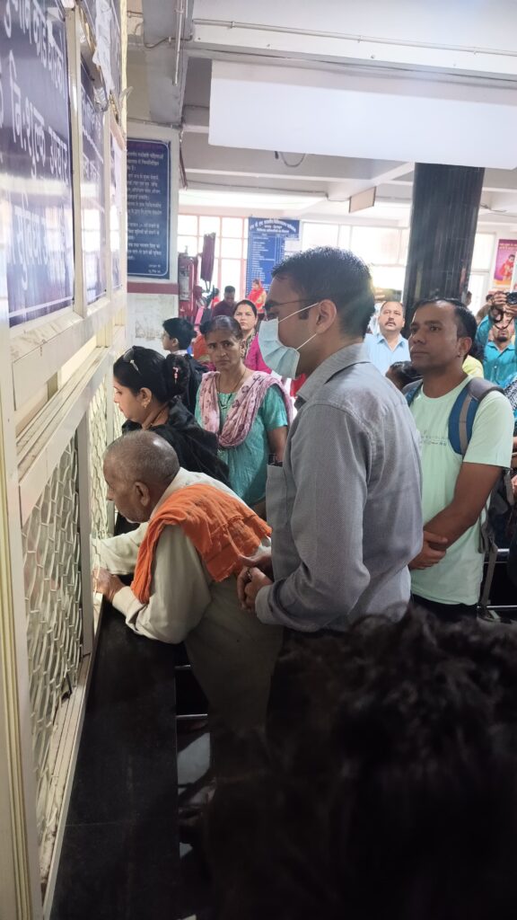 जिलाधिकारी में लाइन में लगकर बनाया ओपीडी पर्ची