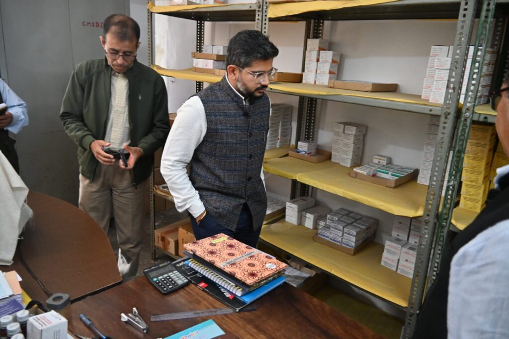 जिलाधिकारी के दिशा निर्देशन पर आज मुख्य विकास अधिकारी अभिनव शाह ने सीएचसी चिकित्सालय सहसपुर में आम जन की तरह लाइन पर लगकर पर्चा कटवाया तथा ओपीडी सुविधा का औचक निरिक्षण किया, इस दौरान उन्होंने औषधि वितरण कक्ष का निरिक्षण किया औषधि प्राप्त करने वाले लोगों की प्रेस स्क्रिप्शन पर्चा का अवलोकन कर रोगियों से बाहर से दवाई लिखें जाने के बारे में जानकारी ली गई, जिस पर उन्होंने बताया सभी दवाई अस्पताल से मिल रही हैं। औषधि स्टोर का निरिक्षण पर स्टॉक रजिस्टर में कुछ दवाइयां सितंबर से प्राप्त नहीं होना पाया गया। जिस पर सीएमओ को शीघ्र औषधि उपलब्ध कराने के निर्देश दिया गया।