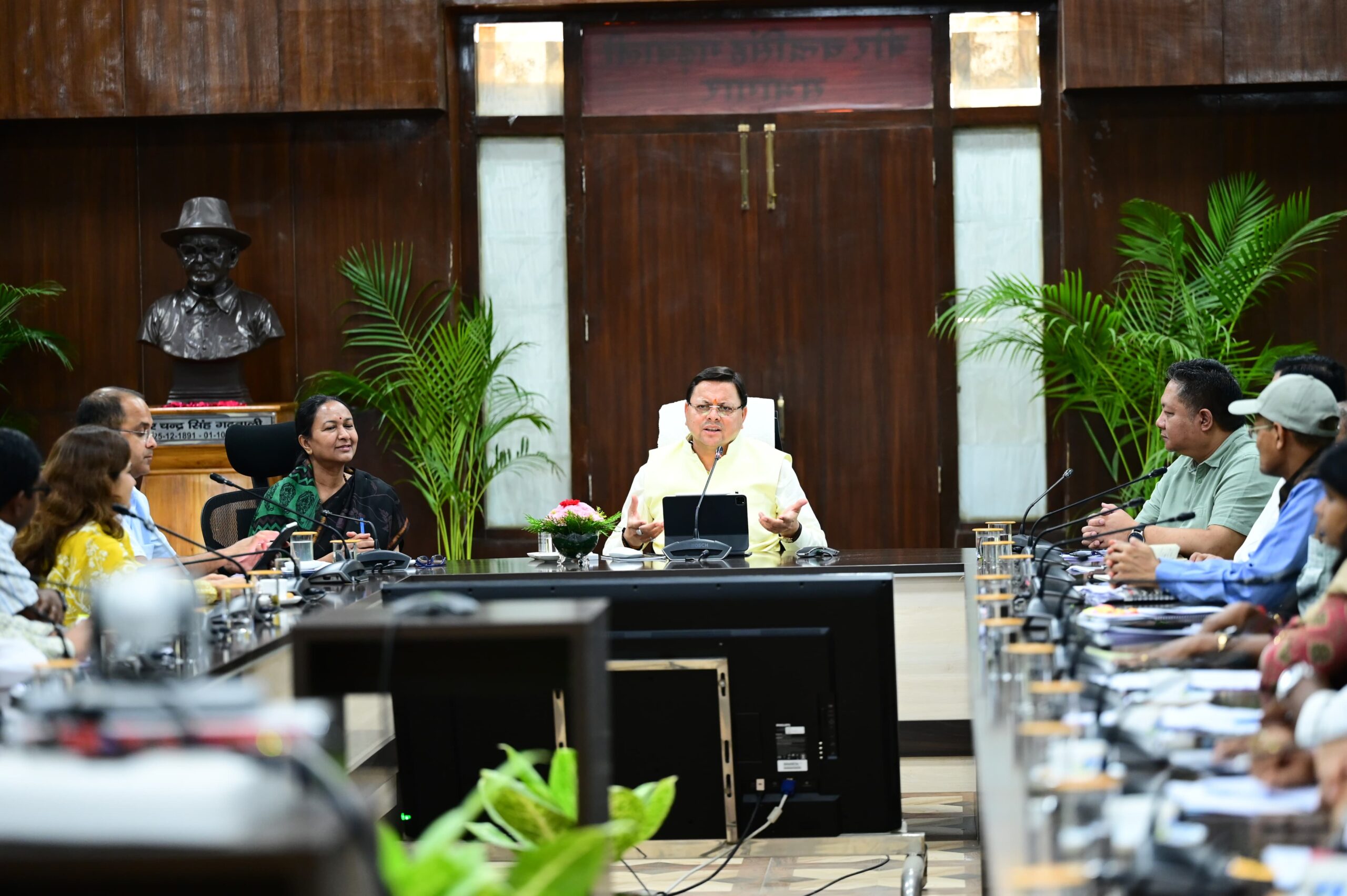 बैठक में मुख्य सचिव श्रीमती राधा रतूड़ी, प्रमुख सचिव श्री एल.फैनई, सचिव श्री शैलेश बगोली, श्री नितेश झा, श्रीमती राधिका झा, श्री दिलीप जावलकर, डॉ. पंकज कुमार पाण्डेय, श्री चन्द्रेश यादव, श्री बृजेश कुमार संत, डॉ. वी.षणमुगम, डॉ. आर. राजेश कुमार, श्री एस.एन पाण्डेय, विभिन्न विभागों के विभागाध्यक्ष वर्चुअल माध्यम से जिलाधिकारी उपस्थित थे।