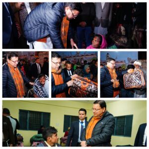 मुख्यमंत्री पुष्कर सिंह धामी ने आई.एस.बी.टी, देहरादून में बेसहारा एवं बेघर लोगों, मलिन बस्तियों में रहने वाले लोगो को सर्दी से बचाव हेतु कंबल वितरित किए।