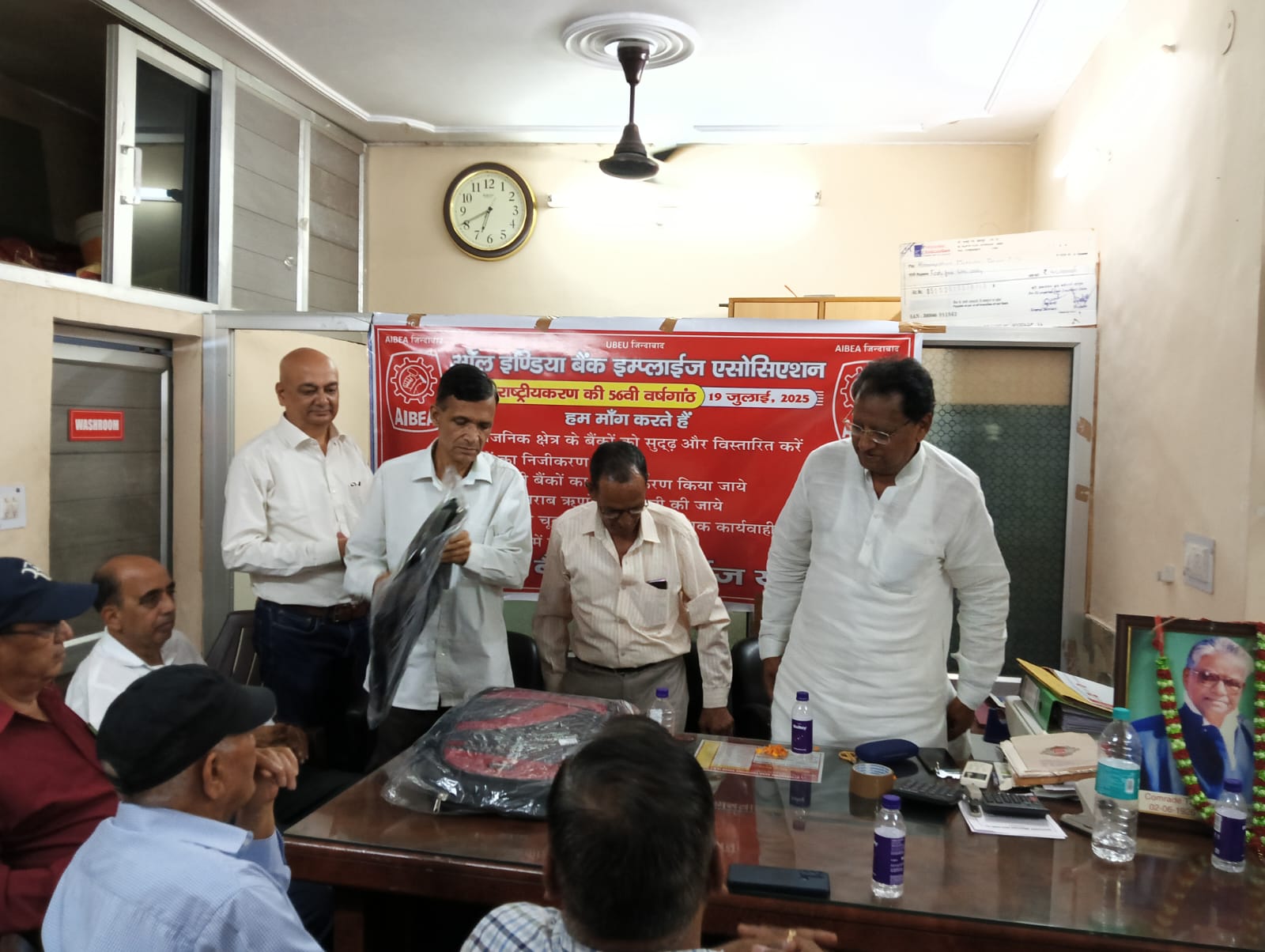शनिवार को यूनियन के कार्यालय में आयोजित कार्यक्रम में वक्ताओं ने कहा कि 19 जुलाई क1969 को 14 बडे बैंकों का राष्ट्रीयकरण किया गया था। बैंकों के राष्ट्रीयकरण से पहले भारत में केवल 820 बैंक शाखायें की जो आज बढकर 900 से ऊ पर हो गई है। कुल बैंक कर्मचारियों की संख्या भी एक लाख से बढकर आठ लाख हो गई है। उन्होंने कहा कि राष्ट्रीयकरण से पहले प्राथमिक क्षेत्र को दिया गया ऋण शून्य था जो 40 प्रतिशत हो चुका है। राष्ट्रीयकरण के बाद गांव के दूरस्थ स्थानों में भी बैंकों की शाखायें खुलीं जिससे आम व्यक्ति तक बैंकिंग सुविधा पहुंची। किसानों के जीवन स्तर में भी सुधार हुआ। इस मौके पर सार्वजनिक क्षेत्र के बैंकों को सुदृढ और विस्तारित करने, बैंकों का निजीकरण बंद करने, निजी बैंकों का राष्ट्रीयकरण करने, कारापोरेट खराब ऋणों की वसूली करने, जानबूझकर चूककर्ताआें पर आपराधिक कार्रवाई करने एवं बैंकों में पर्याप्त भर्ती करने की मांग की गई।