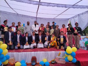*विद्यालय के उत्कृष्ट छात्र-छात्राओं एवं शिक्षकों को सम्मानित करते हुए शिक्षा सहायक निदेशक डॉक्टर चंडी प्रसाद घिल्डियाल।*