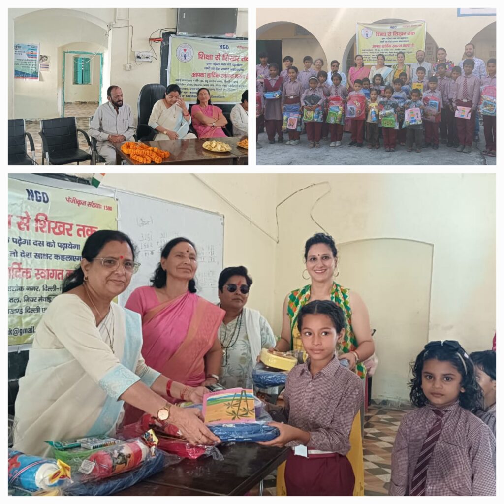 संस्था द्वारा गोद लिए गए स्कूल मे पुनः विगत वर्ष की भांति” भी शिक्षा शिखर तक द्वारा “बच्चो को पानी की बोतल, बैग,जियोमेट्री बॉक्स,टिफिन, स्टेशनरी,रंग आदि दिए गए।