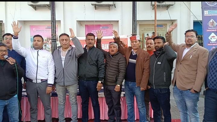फाइव डे वर्किंग की मांग को लेकर बैंक कर्मियों का प्रदर्शन
